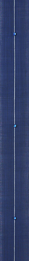 まるで紺青(こんじょう)色の美しい海に、一筋の銀色のラインがまっすぐ下りているよう。碧色のホタルガラスが、海の青いきらめきを表わしています。静かな落ち着きをたたえた細タペです。