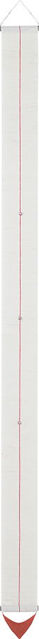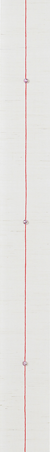 麻そのものの色をいかした「白麻」に、鮮やかな朱色のラインが目を引き、そして優しい桃色のホタルガラスが小さくも存在感を放ちます。桃花咲き誇る桃源郷をイメージした一枚です。